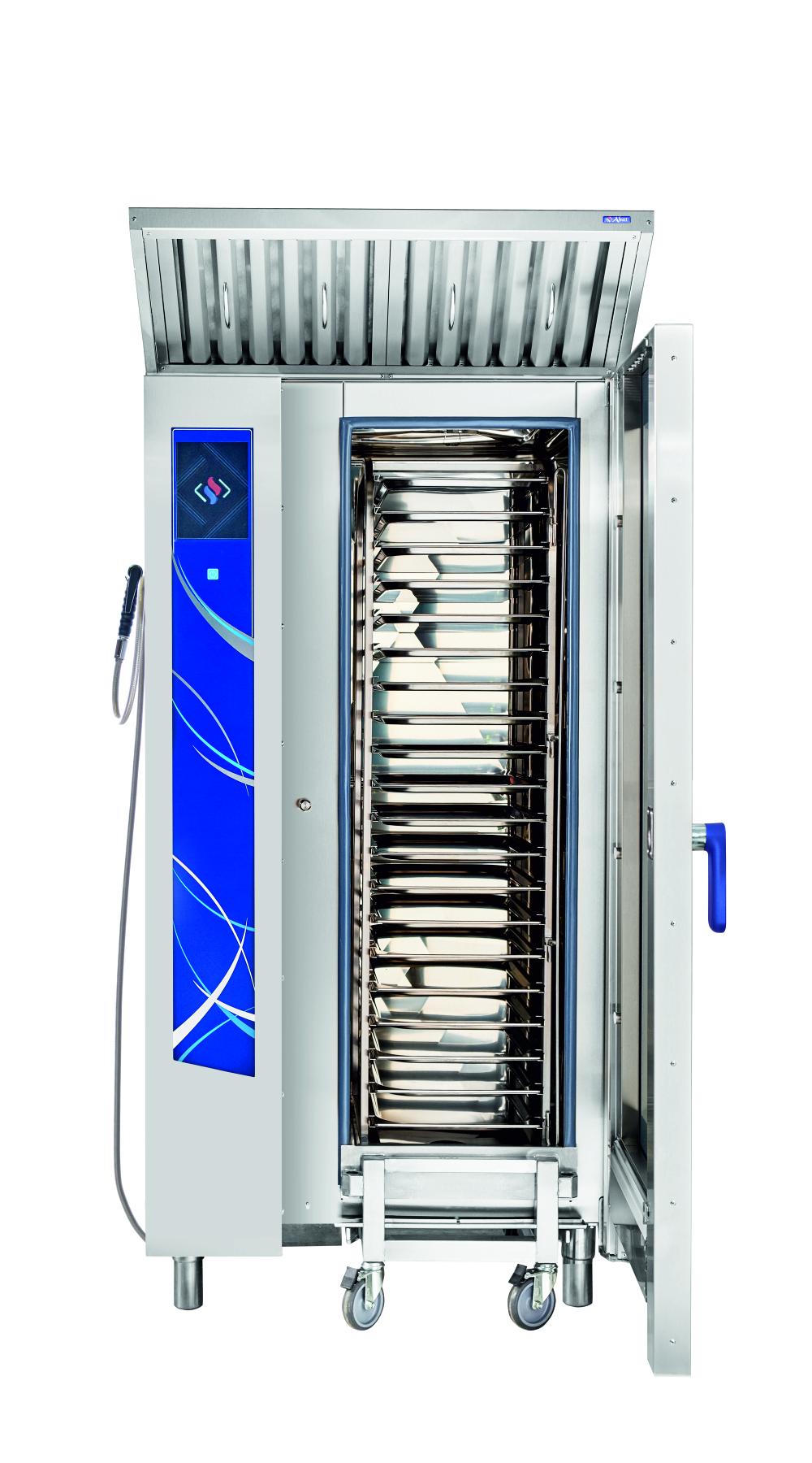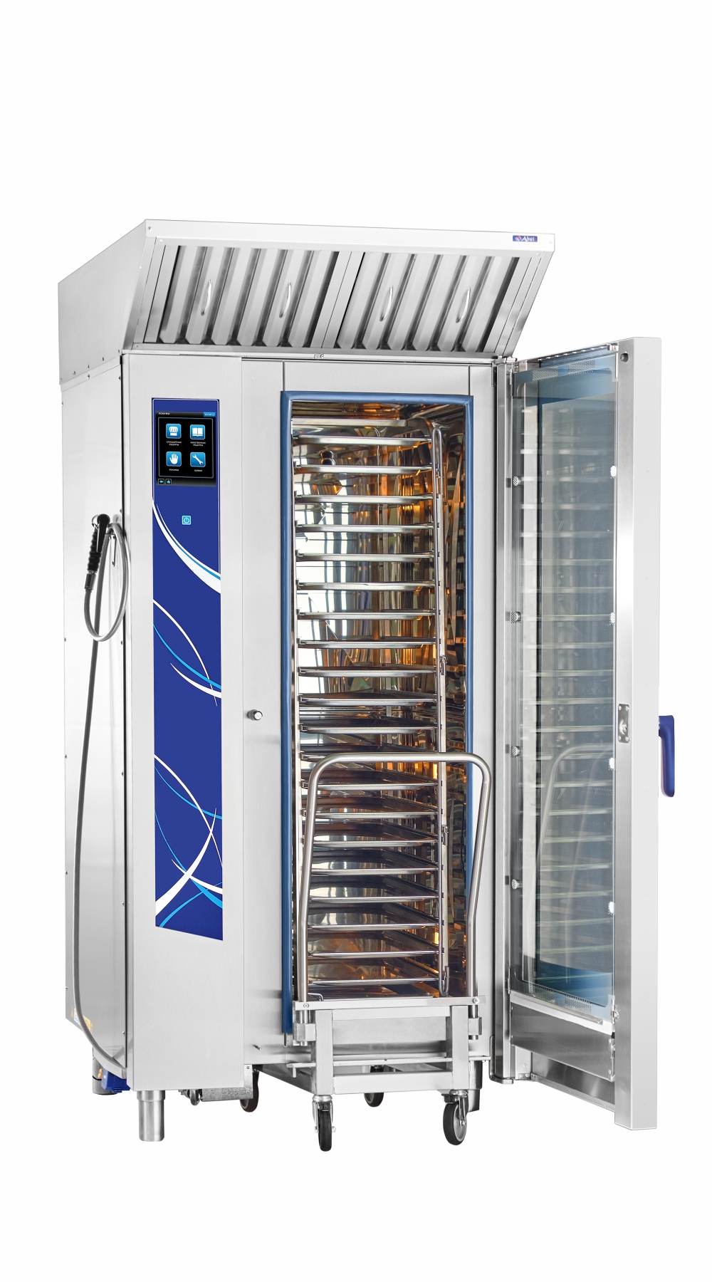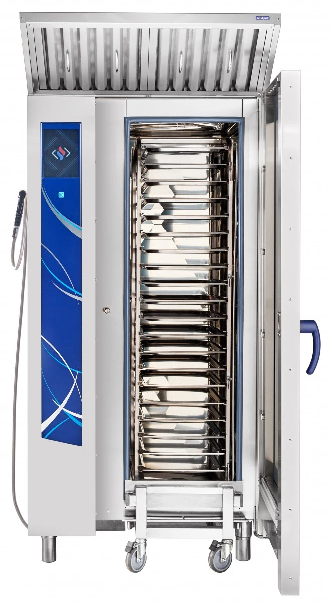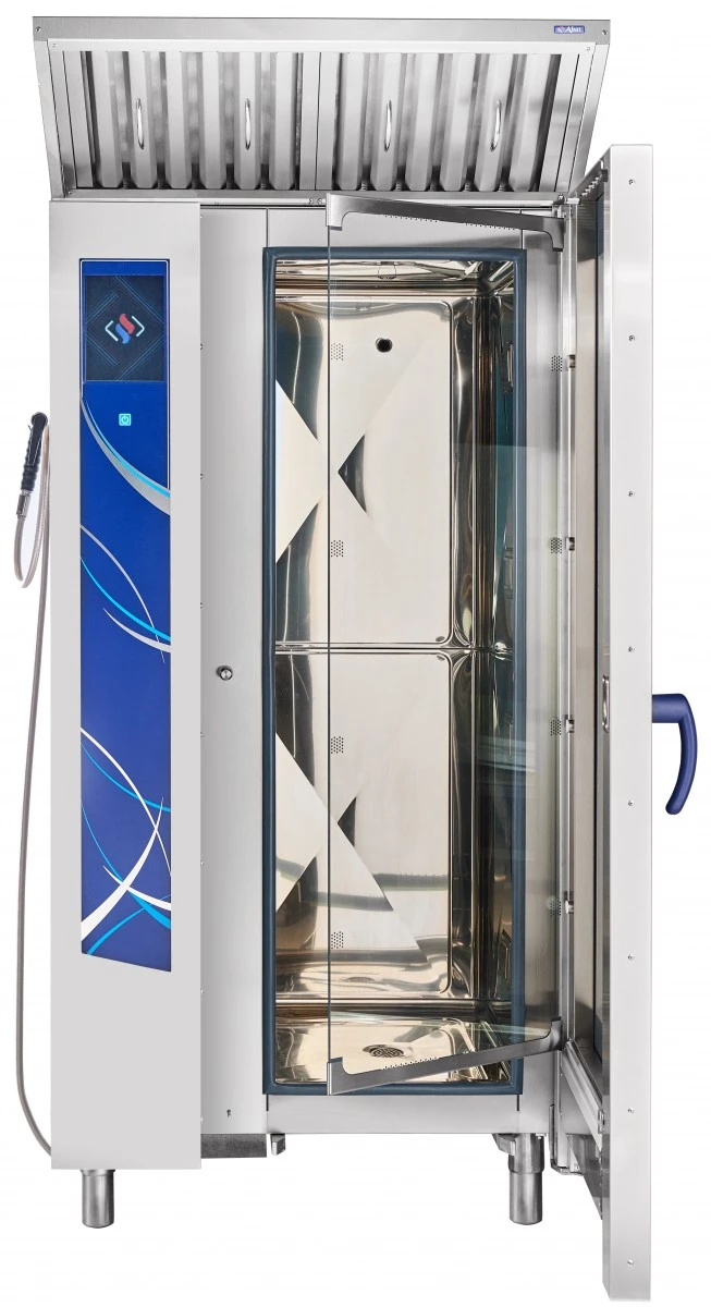 Габариты: 890x850x1780мм, 37000Вт, 380В, max температура внутри камеры +270С, инжекционный, 20хGN-1/1, 120 установленных + память на 360 доп. программ приготовления, автоматическая мойка, вся нерж., без г/емкостей, 3х-канальный щуп, ЖК экран, сенсорное управление, USB-порт