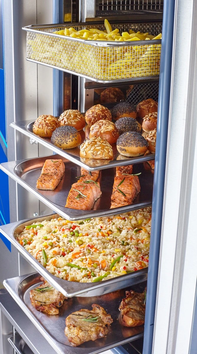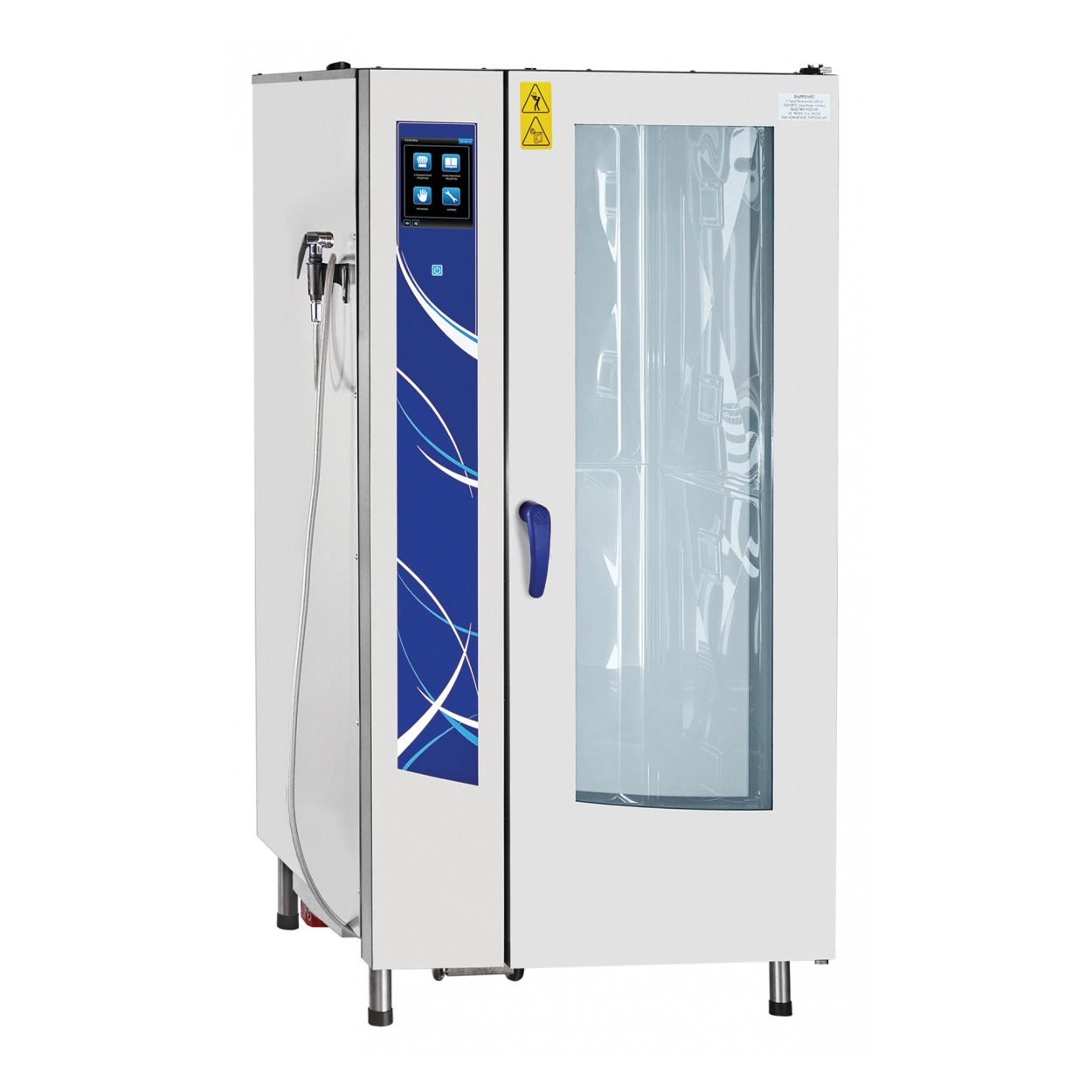 Габариты: 890x814(890)x1780 мм, 35000Вт, 380В, 20 уровней, без тележки, парогенератор, 120 установленных + память на 360 доп. программ приготовления, автоматическая мойка, вся нерж, без г/емкостей, 3х-канальный щуп, ЖК экран, сенсорное управление, USB-порт.