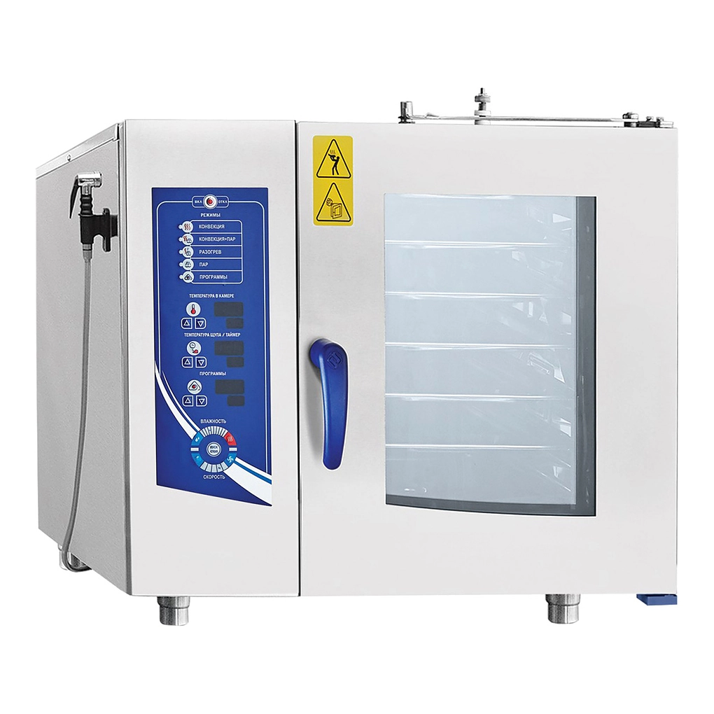 Габариты: 840х840(905)х805 мм, 9500 Вт, 380-220 В, морской, парогенератор, память на 110 программ приготовления, 6хGN-1/1, вся нерж, без г/емкостей, 3х-канальный щуп, регулировка влажности, вентилятор: + 5 скоростей, фиксация двери, крепление к полу