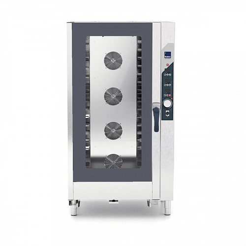 Температурный режим 30°С-270°С, вместимость 20 гастроемкостей GN 1/1, расстояние между уровнями 67 мм.