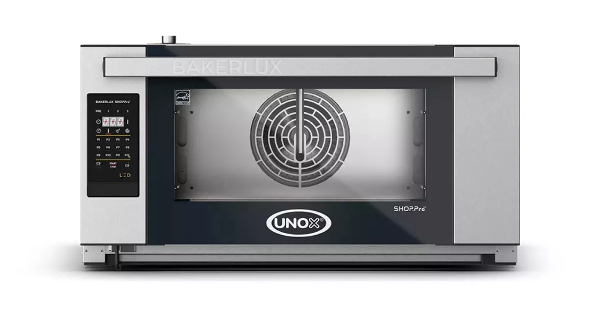Печь конвекционная электр. т.м. UNOX серии XEFR, модель XEFR-03EU-ELDV, 800x811x425мм, Мощность: 3,45 кВт, Напряжение: 220В. Панель управления: LED, 99 программ. Программирование - 3 шага. 2 скорости вращения вентилятора. С пароувлажнением. Вместимость - 4 противня 460х330 мм. Температура: от 50 до 260°C