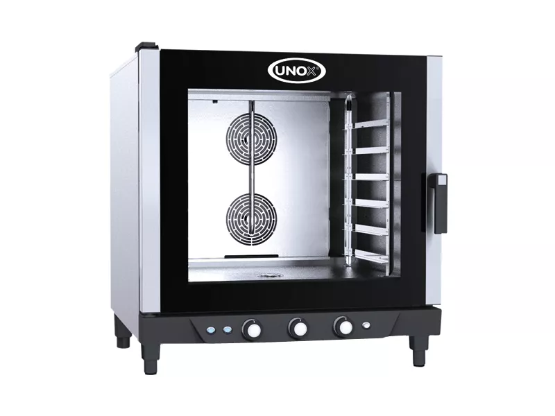 UNOX S.p.A. Печь конвекционная электр. серии XB, модель XB 693-MP (с универс. направляющими) - Печь пароконвекционная электрическая инжекторная для выпечки и гастрономии с универсальными направляющими, серии BakerLux, с функцией прямого пара (инжекторная), вместимость 6 противней 600х400мм или 6 противней GN1/1, с механическим управлением, подсветкой, 2 вентиляторами с автореверсом, без автоматической системы мойки, правой дверью с возможностью перевешивания. 380B, 10,5 кВт, Габариты: 860 x 882 x 932мм, Вес:86 кг