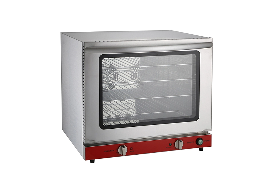 Печь пароконвекционная т.м. EKSI серии Snack Line, мод. ESL 0412GM (механическая п/у), 580x570x510, брутто 27кг, нетто 23,6кг , конструкция из нержавеющей стали, 3000Вт, 220В, 65-260С, таймер 0-120 мин., 4 уровня, в комплекте 4 решетки и 4 противня