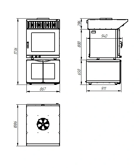 Габаритные размеры: 867х1079х251(300)мм, напряжение 220В, эл. мощность 120Вт