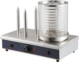 Аппарат для хот-догов GASTRORAG HDW-03 предназначен для приготовления сосисок и подогрева булочек на предприятиях общественного питания и торговли. Модель оснащена 3 нагреваемыми штырями. Корпус и штыри выполнены из нержавеющей стали, контейнер — из закаленного стекла с корзиной и крышкой.