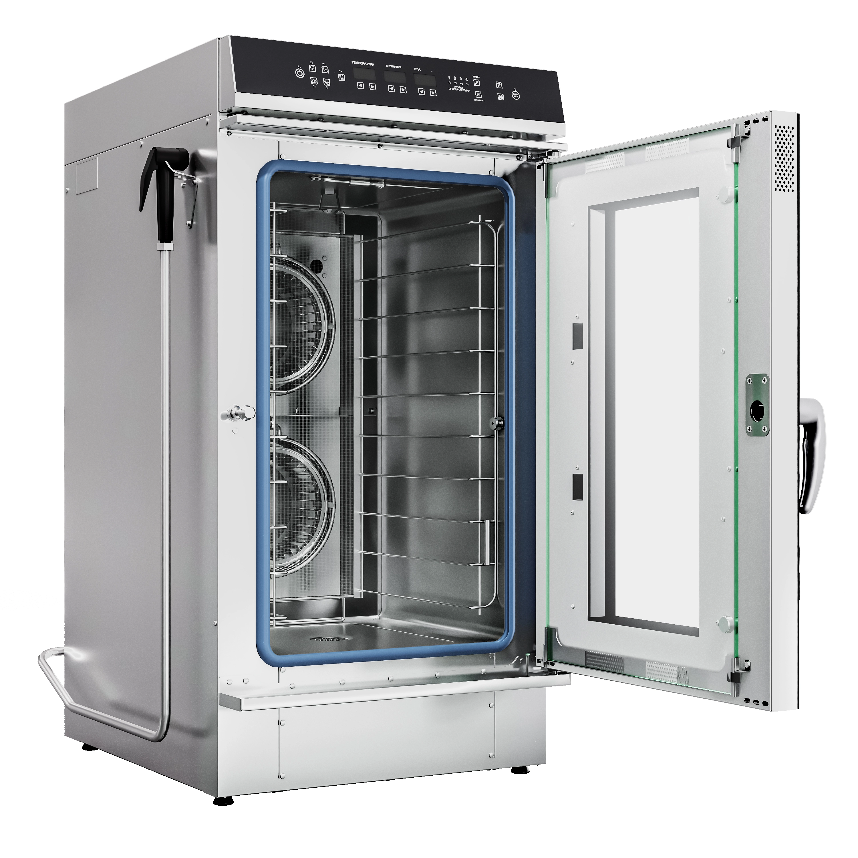 Габариты: 553x800x1095 мм, 10500Вт, 380В , верхняя панель управления (парогенератор, 10хGN-2/3, память на 110 программ приготовления, термощуп, регулировка влажности, автоматическая мойка, ручной душ в комплекте, вся нерж, без гастроемкостей) черный дизайн, реверс.