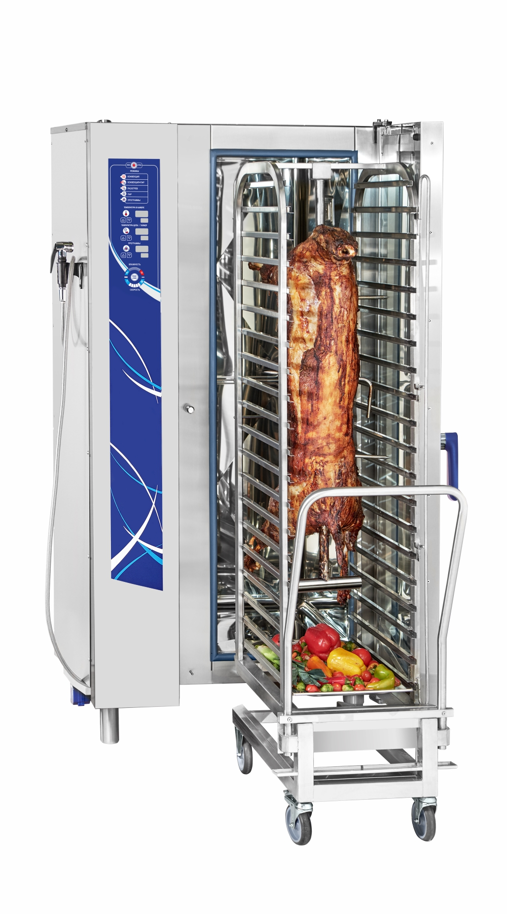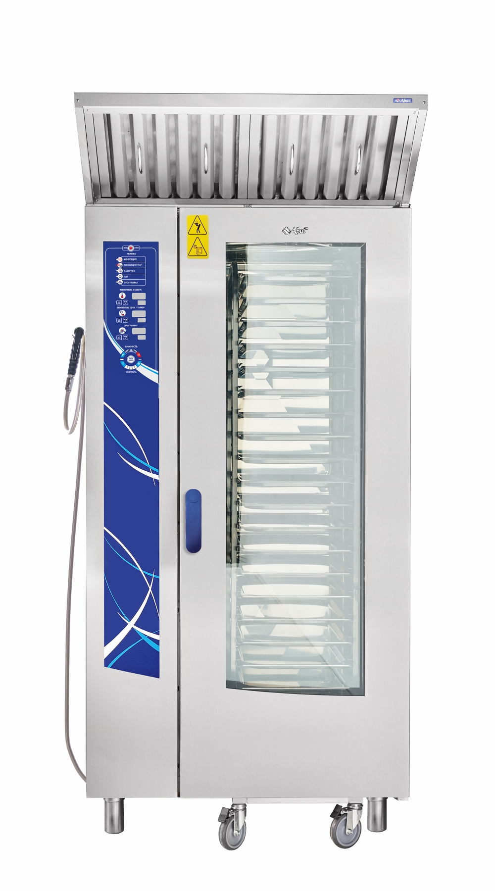 Габариты: 890х800x1775мм, 35000Вт, 380В, парогенератор, тележка на 20хGN-1/1 в комплекте, память на 110 программ приготовления, вся нерж, без г/емкостей, 3х-канальный щуп, регулировка влажности, вентилятор: реверс + 5 скоростей