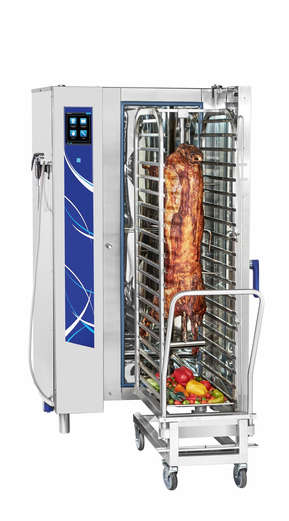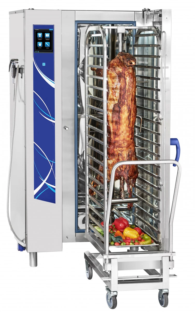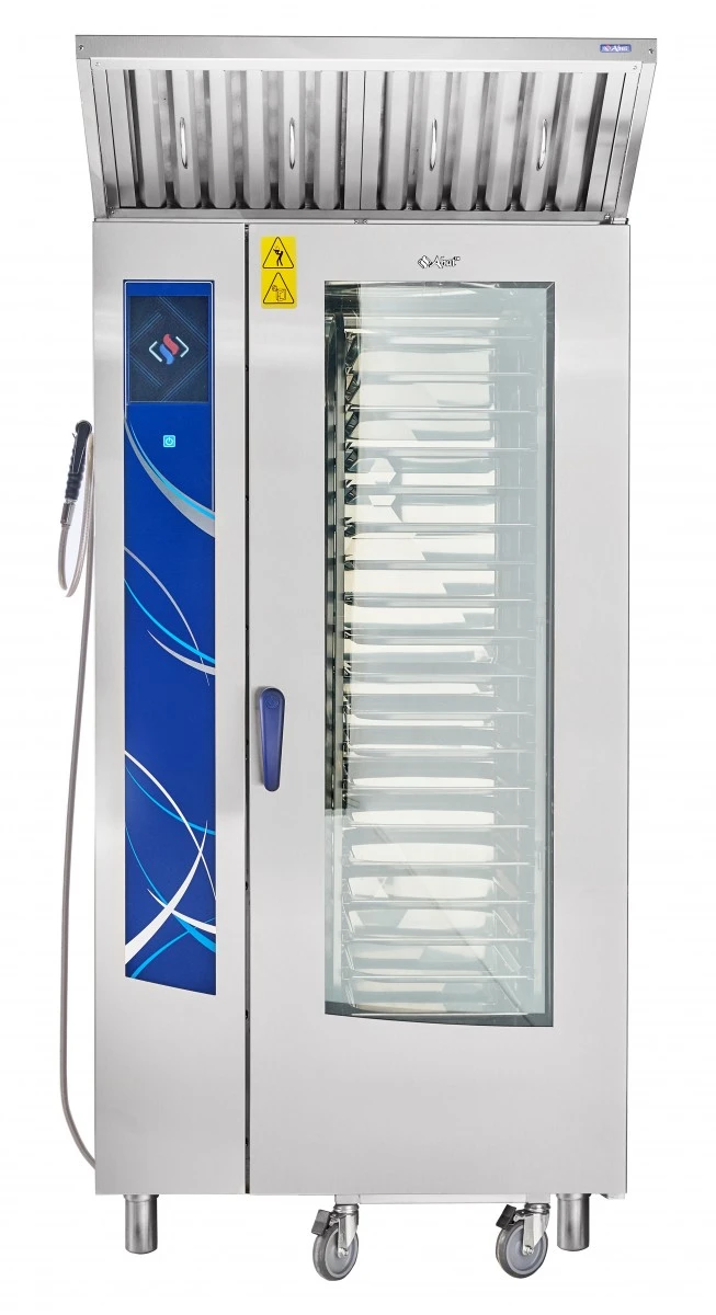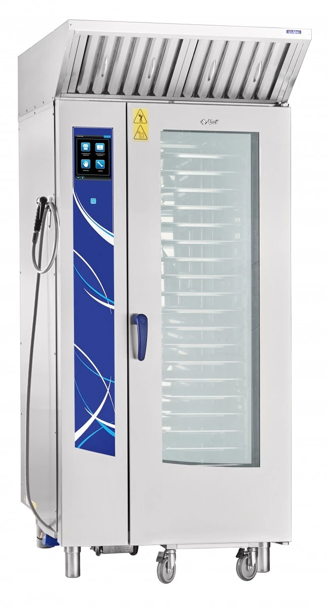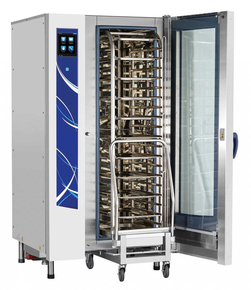 Габариты: 890x850x1780мм, 37000Вт, 380В, max температура внутри камеры +270С, инжекционный, 20хGN-1/1, 120 установленных + память на 360 доп. программ приготовления, автоматическая мойка, вся нерж., без г/емкостей, 3х-канальный щуп, ЖК экран, сенсорное управление, USB-порт