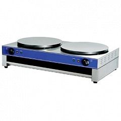 Блинница электрическая профессиональная двойная торговой марки ASSUM обеспечивает бесперебойное быстрое выпекание блинов. Жарочная поверхность с тефлоновым покрытием.