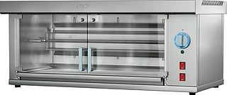 Гриль для кур ATESY Командор-2/1М используется на предприятиях общественного питания и торговли. Модель оснащена электродвигателем, раздельными терморегуляторами для каждой группы ТЭНов, съемным шампуром, внутренней подсветкой камеры и поддоном для сбора жира. Корпус и все внутренние элементы выполнены из пищевой нержавеющей стали, дверца — из термостойкого ударопрочного стекла с добавлением горного хрусталя, ручка двери — из термостойкого пластика, и ножки — из пластмассы.