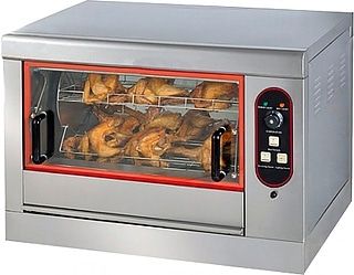 Электрический карусельный гриль ROAL EB-266 используется на предприятиях общественного питания и торговли для равномерного запекания куриных тушек, окорочков, грудок и крылышек. Модель оснащена терморегулятором, 4 корзинками, чашей для масла и 4 колесами. Дверца с жаропрочным стеклом и внутренняя подсветка позволяют контролировать процесс приготовления. Корпус выполнен из нержавеющей стали.