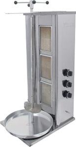 Газовый гриль для шаурмы Pimak АСМ075 используется на предприятиях общественного питания и торговли для приготовления мясной начинки для шаурмы. Вертикальная модель оснащена 3 горелками, двигающейся нижней полкой и предохранительным клапаном. Корпус выполнен из нержавеющей стали AISI 304.