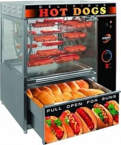 Компактный карусельный гриль с люлечным вертелом Sikom МК-1.44 предназначен для приготовления хот-догов в заведениях быстрого питания, супермаркетах и уличной торговли.