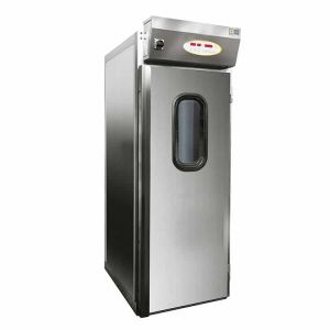 Блок управления регулирует температуру и количество пара, гигростат обеспечивает непрерывный и точный контроль влажности. Расстоечные шкафы работают с температурой до 40°C и влажностью до 97%.