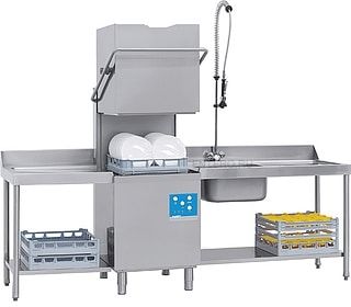 Купольная посудомоечная машина Elettrobar FAST 180 используется на предприятиях общественного питания для мытья стаканов, посуды и кухонной утвари, а также подносов и гастроемкостей. Возможна линейная или угловая установка, не требующая дополнительных компонентов. Модель оснащена электромеханической панелью управления с 3 световыми индикаторами. Корпус выполнен из нержавеющей стали.