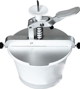 Ручная машина Vitella Blicklefiller 1 arm предназначена для добавления начинки из меда, джема и заварных кремов в круассаны, пончики и эклеры на предприятиях общественного питания. Модель выполнена из алюминия и нержавеющей стали, емкость — из пластика.