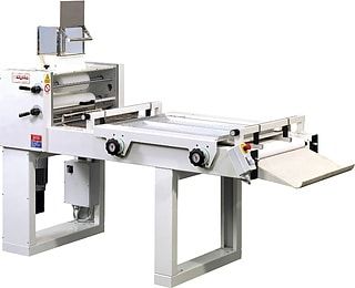 Тестозакаточная машина Sottoriva F4 используется в пекарнях, на предприятиях пищевого производства, общественного питания и торговли для для формования закатанных батонов из крутого и смешанного теста. Модель оснащена 4 раскатывающими валками, закатывающей доской с возможностью изменения угла наклона, сеткой предварительной закатки, столом с конвейером, и бункером для отработанных кусков теста. Толщину раскатки можно регулировать независимо для каждой пары валков.