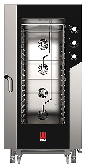 930x1041x1900 мм, 380В, 31 кВт, 20 ур. GN 1/1, механическая панель управления, 5 ур. подачи пара, темп. режим 100-270С, камера из нерж стали AISI 304, 1 тележка в комплекте.