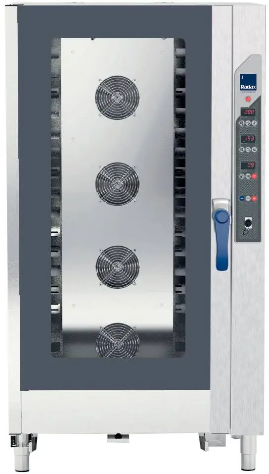 Температурный режим 30°С-270°С, вместимость 20 гастроемкостей GN 1/1, расстояние между уровнями 67 мм.