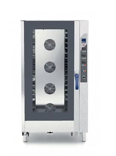 Температурный режим 30°С-270°С, вместимость 20 гастроемкостей GN 1/1, расстояние между уровнями 67 мм.