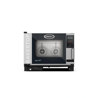Пароконвектомат электрический инжекторный для выпечки и гастрономии с универсальными направляющими, серии BakerTop MIND.Maps Countertop, с функцией прямого пара (инжекторная), вместимость 4 противня 600х400мм или 4 противня gn 1/1, с сенсорным программируемым управлением One, подсветкой, одноточечным щупом, 2 вентиляторами с автореверсом, автоматической системой мойки, правой дверью. 380V, мощность 7 кВт, Габариты 860x967x675, Габариты в упаковке 960x1110x840
