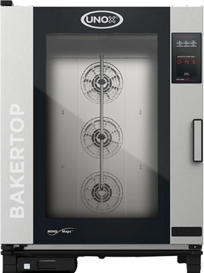UNOX S.p.A. Пароконвектомат электрический с универсальными направляющими XEBC-10EU-E1LM-MP - Пароконвектомат электрический инжекторный для выпечки и гастрономии с универсальными направляющими, серии BakerTop MIND.Maps Countertop, с функцией прямого пара (инжекторная), вместимость 10 противня 600х400мм или 10 противня gn 1/1, с сенсорным программируемым управлением One, подсветкой, одноточечным щупом, 3 вентиляторами с автореверсом, автоматической системой мойки, левой дверью. 380V, Габариты 860*967*1162, Габариты в упаковке 960*1110*1340, температурный нагрев от 30 - 260, мощность 14 кВт