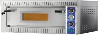 Печь для пиццы GAM SB6 прекрасно впишется в интерьер кухни благодаря стильному дизайну. Компактная конструкция позволяет устанавливать ее даже в небольших помещениях. Печь для пиццы GAM SB6 может одновременно выпекаться до 6 пицц диаметром 340 мм. Фронтальная часть наружной поверхности печи выполнена из нержавеющей стали, а боковые наружные панели изготовлены из окрашенного металлического листа. Кроме того, большое стекло в двери позволяет осуществлять непрерывный контроль процесса выпекания. Использование системы петель с пружинами позволяет снять дверь в течение нескольких секунд, что облегчает ее чистку. Внутреннее освещение в тепловой камере печи позволяет контролировать процесс приготовления