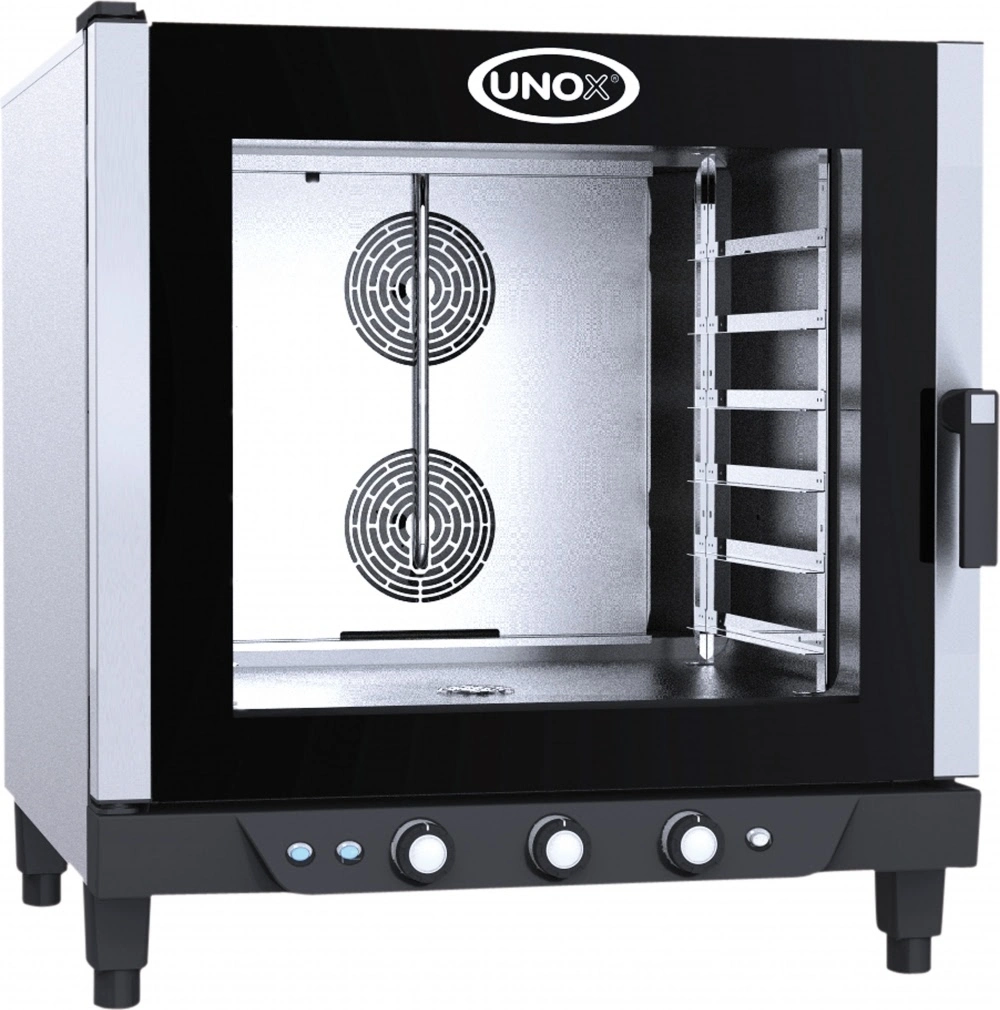 UNOX S.p.A. Печь конвекционная электр. серии XB, модель XB 693-MP (с универс. направляющими) - Печь пароконвекционная электрическая инжекторная для выпечки и гастрономии с универсальными направляющими, серии BakerLux, с функцией прямого пара (инжекторная), вместимость 6 противней 600х400мм или 6 противней GN1/1, с механическим управлением, подсветкой, 2 вентиляторами с автореверсом, без автоматической системы мойки, правой дверью с возможностью перевешивания. 380B, 10,5 кВт, Габариты: 860 x 882 x 932мм, Вес:86 кг