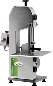 Ленточная пила Fama FSG 100 используется на предприятиях общественного питания, торговли и в цехах по переработке мяса для крупного измельчения свежего, охлажденного и замороженного мяса любого типа и вида. Полотно выполняет ровный, гладкий срез без дробления кости. Корпус выполнен из анодированного алюминия, рабочая поверхность — из нержавеющей стали.