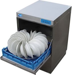 Посудомоечная машина устанавливается под столом или в барную стойку, подключается как к холодной, так и горячей воде.