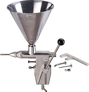 Дозатор начинки Pavoni DOSIMINI используется в пекарнях и кондитерских, на предприятиях пищевой промышленности и общественного питания для наполнения кондитерских изделий начинкой из шоколада, меда, джема и заварного крема. Модель оснащена ручным режимом работы. Изделие крепится к столу. Ручка и загрузочный желоб — из нержавеющей стали AISI 304.