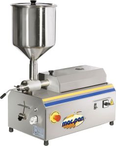 Шприц-дозатор MAC.PAN MDE/CIOC используется на предприятиях пищевой промышленности и общественного питания, в пекарнях и кондитерских для наполнения кондитерских изделий начинкой из шоколада, меда, джема и различного вида кремов. Модель оснащена загрузочным бункером. Корпус выполнен из нержавеющей стали.