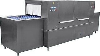 Тоннельная посудомоечная машина ГродТогрМаш ММУ-1000М предназначена для мытья тарелок, стаканов, чашек, столовых приборов и подносов размером не более 530х325 мм на предприятиях общественного питания. Модель оснащена электронной панелью управления.