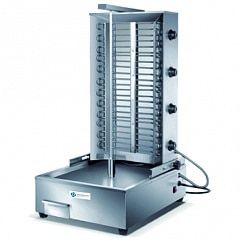 Оборудование для приготовления шаурмы подразделяется на электрическое и газовое. Электрический гриль для шаурмы оборудован раздельными регулируемыми зонами нагрева. Скорость вращения штока с мясом 2,5 оборота в минуту. Диаметр мяса, загружаемого в аппарат до 400 мм. Данное оборудование представлено тремя моделями, различающимися по размеру, весу, мощности.